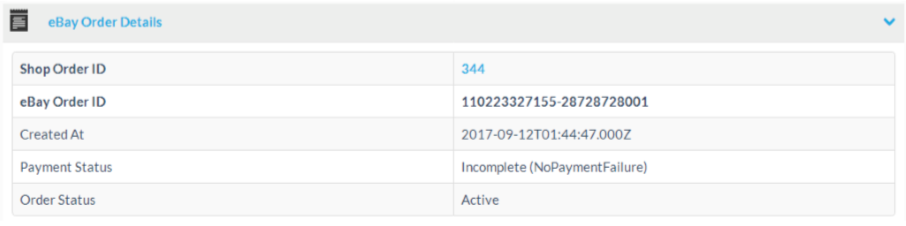 | Shop Order ID | The shop order ID, if a shop order was generated from the eBay order. Clicking on the Order ID will open the shop’s order details page. |