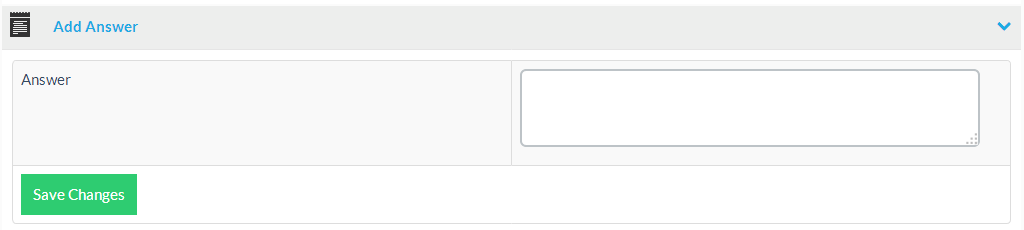 Simply enter the answer in the text field and click on the “Save Changes” button to add the answer to the currently selected FAQ question.
