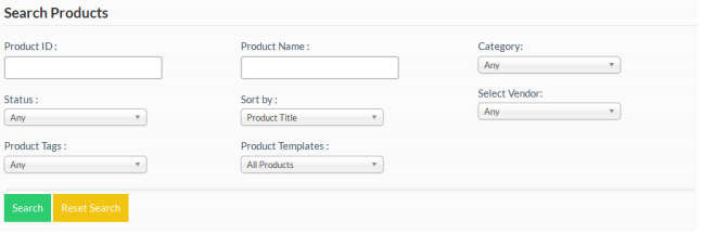 | Product Templates | Search for products that are flagged as template products or not. Available choices are: