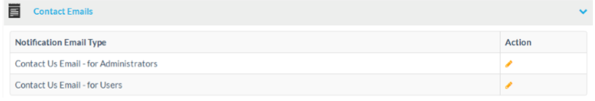 The following email notification types are available at contact emails section: