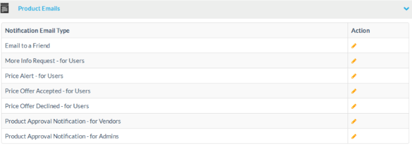The product emails section: