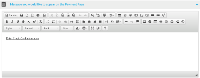 The payment page message section: