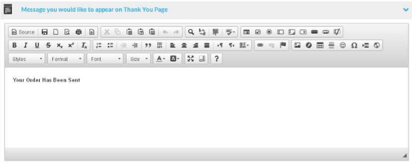 The thank you page message section: