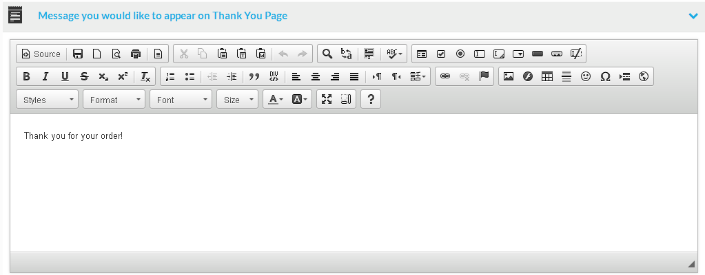 The thank you page message section:
