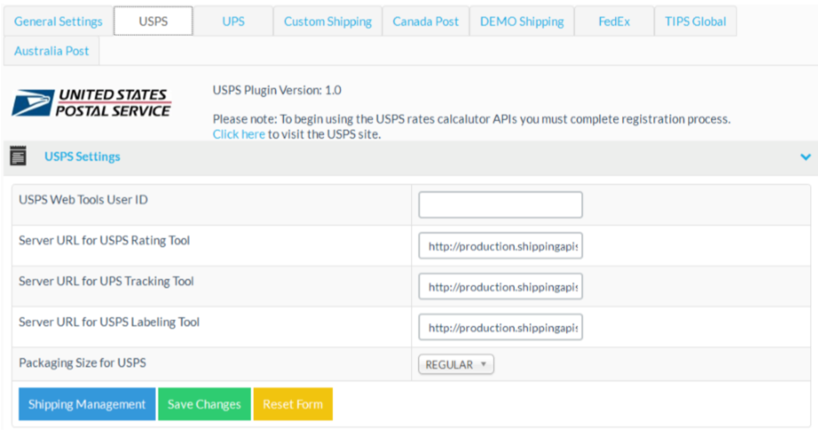 | Server URL for USPS Labeling Tool | The server URL for the USPS labeling tool |