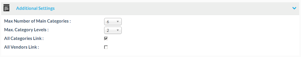 e.g.: At the category bar module, you can setup a maximum number of categories you want to appear, how many sub levels of the categories should be included and if you want additional links to appear for special category sections.