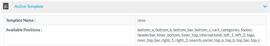 The active template section gives you information about the current template and the available layout positions of the current skin template.