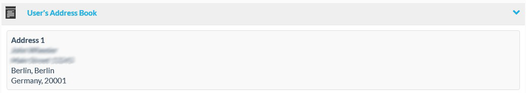The user’s address book section shows the user’s shipping addresses, if separate shipping addresses were saved.