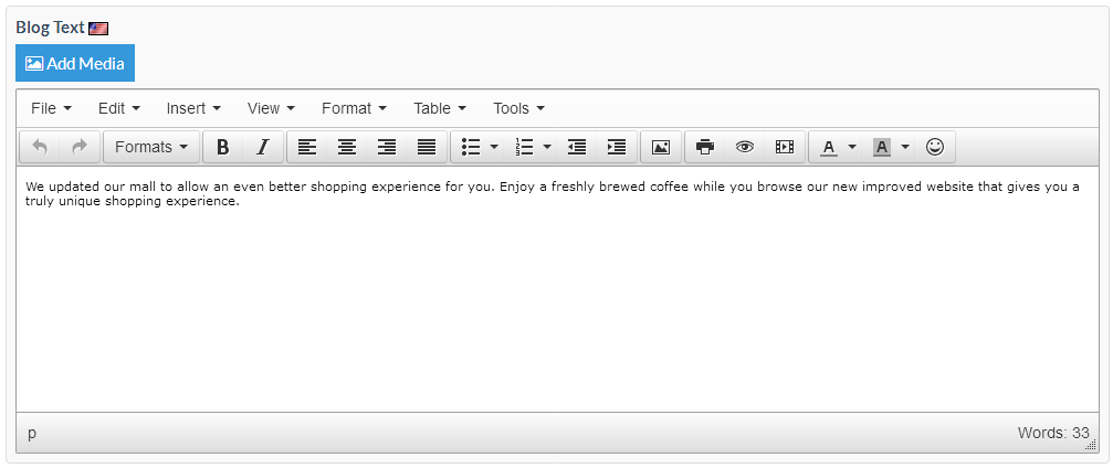 At the blog text section you can compose the text or HTML code for your blog article.