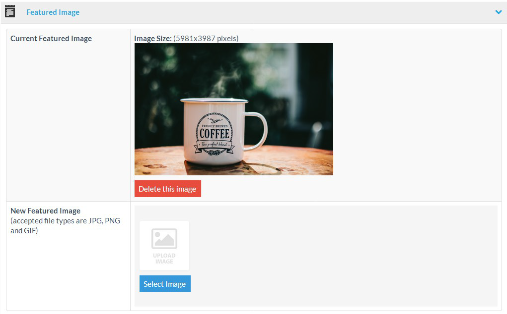 The featured image section:
