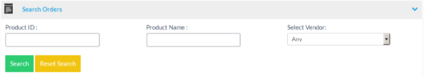 Click on the “Search” button to search for specific orders according to the data entered at the search fields.