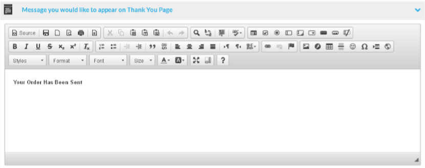 At the thank you page message section, you can enter a message after the order is processed at the thank you page.