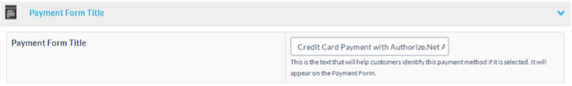 At the payment form title section you can edit the text, that will appear on the payment form , if a customer selects this payment method to pay.