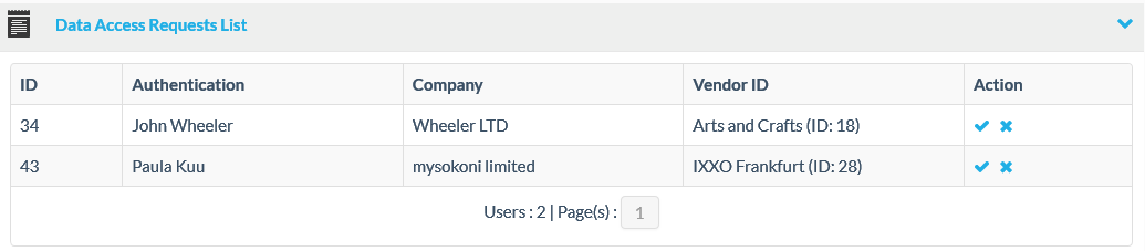 Click on the “check” icon to approve a data access request.