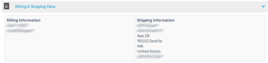The shipping information section: