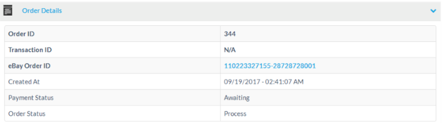 The eBay order details section shows basic information about the order. Among the information shown are, the order IDs, the order dates and the eBay order status.