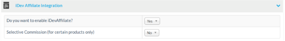 At the iDev Affiliate integration section you can enable or disable the iDev Affiliate integration and set if commission is only paid for certain products only.