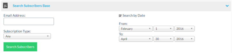 | Search by Date | Select this, if you want to search by a specific date range when that subscriber was added. |