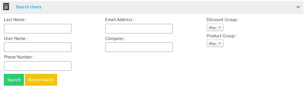 At the browse users page you can manage your users. You can search for specific users in your database and view their status and general information about them, like their real name, company name, email address and their discount and product groups. You can also create new users or delete user accounts.