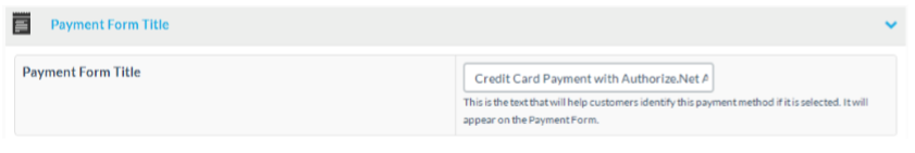 At the payment form title section you can edit the text, that will appear on the payment form , if a customer selects this payment method to pay.