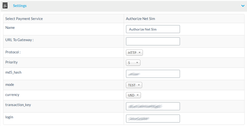 The payment server settings section will differ widely, depending on the selected payment method you are editing. Typically, some settings are common among most payment gateways.
