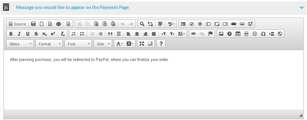 At the payment page message section, you can enter a message that will appear at the payment page, if a vendor selects this payment method when paying for vendor services.