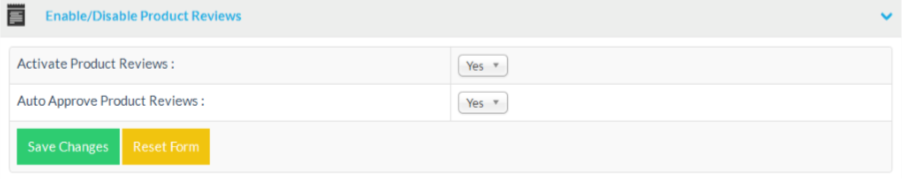 At the enable/disable product reviews form, you can enable or disable the availability of product reviews at the storefront. You can also auto approve reviews, if you don’t want to manually approved reviews about products.