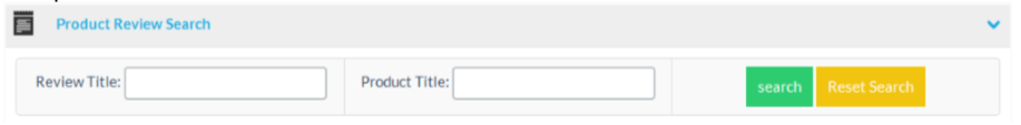 The product review search form allows you to search for specific reviews by review title and or product title.