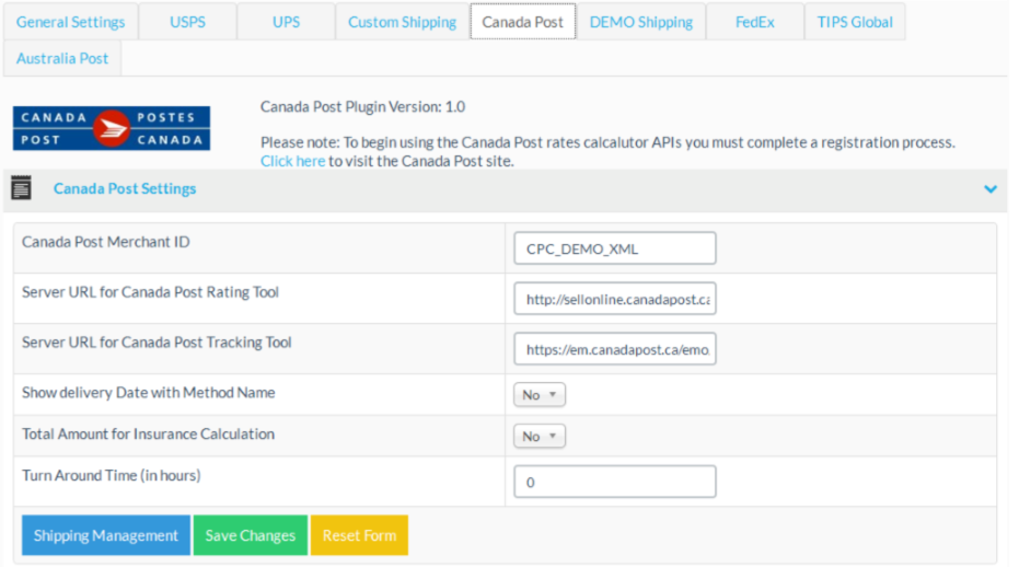 | Canada Post Merchant ID | The Canada Post merhchand ID you obtained by registering at Canada Post |
