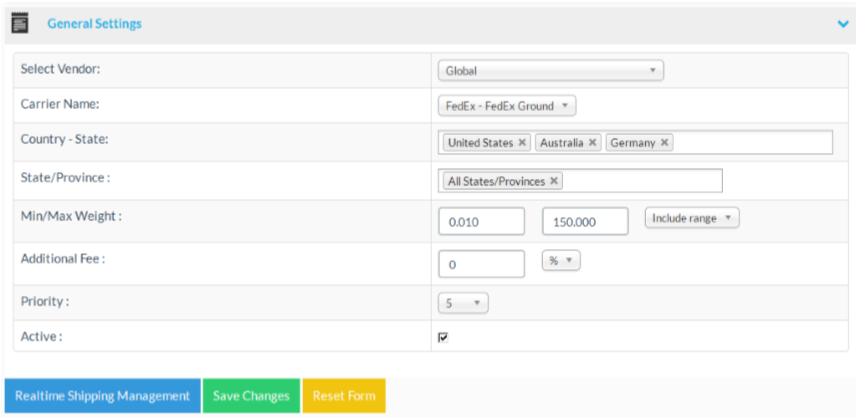 This page allows you to edit and change all details of a selected realtime shipping method.