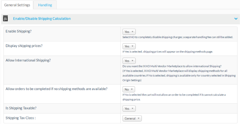 | Enable Shipping | If “No” is selected shipping charges are completely disabled; however, a separate handling fee can still be added. |