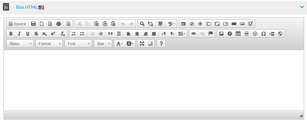 Please note: The content entered at the HTML section is language specific. The flag at the right side of the header indicates which language version of the content is currently edited or created.