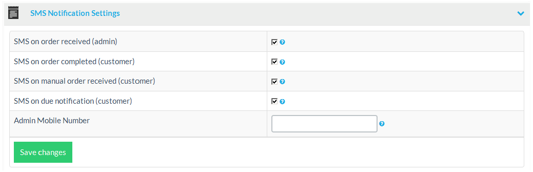 | SMS on order received (admin) | The administrator receives a SMS notification when a customer orders something from the shop. |