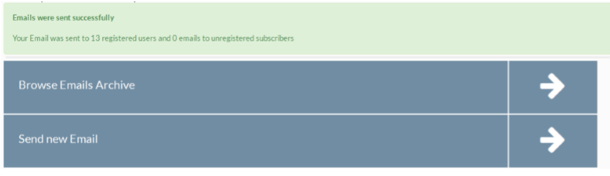 You can now browse the emails archive where all your sent emails are listed or create a new product updates email.