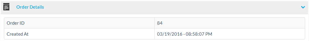 The order details section includes information, like the order ID and the date the order was created.