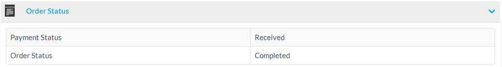 The order status section, shows the payment and overall order status.
